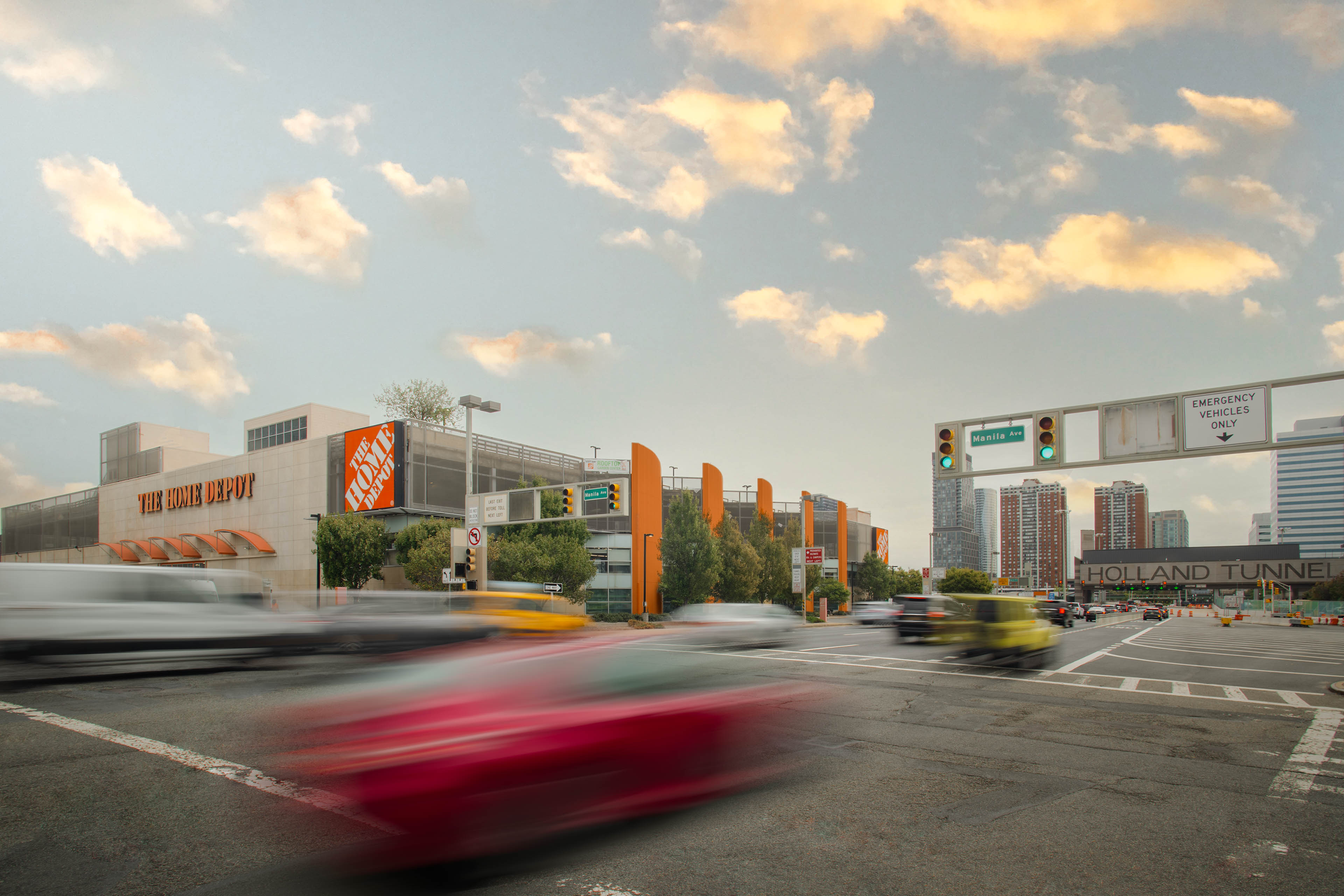 In Jersey City, SBLM designs a flagship store that flips the script on traditional big-box retail. The building’s curved, bright orange accents catch the eye of tens of thousands of drivers each day heading toward Manhattan.