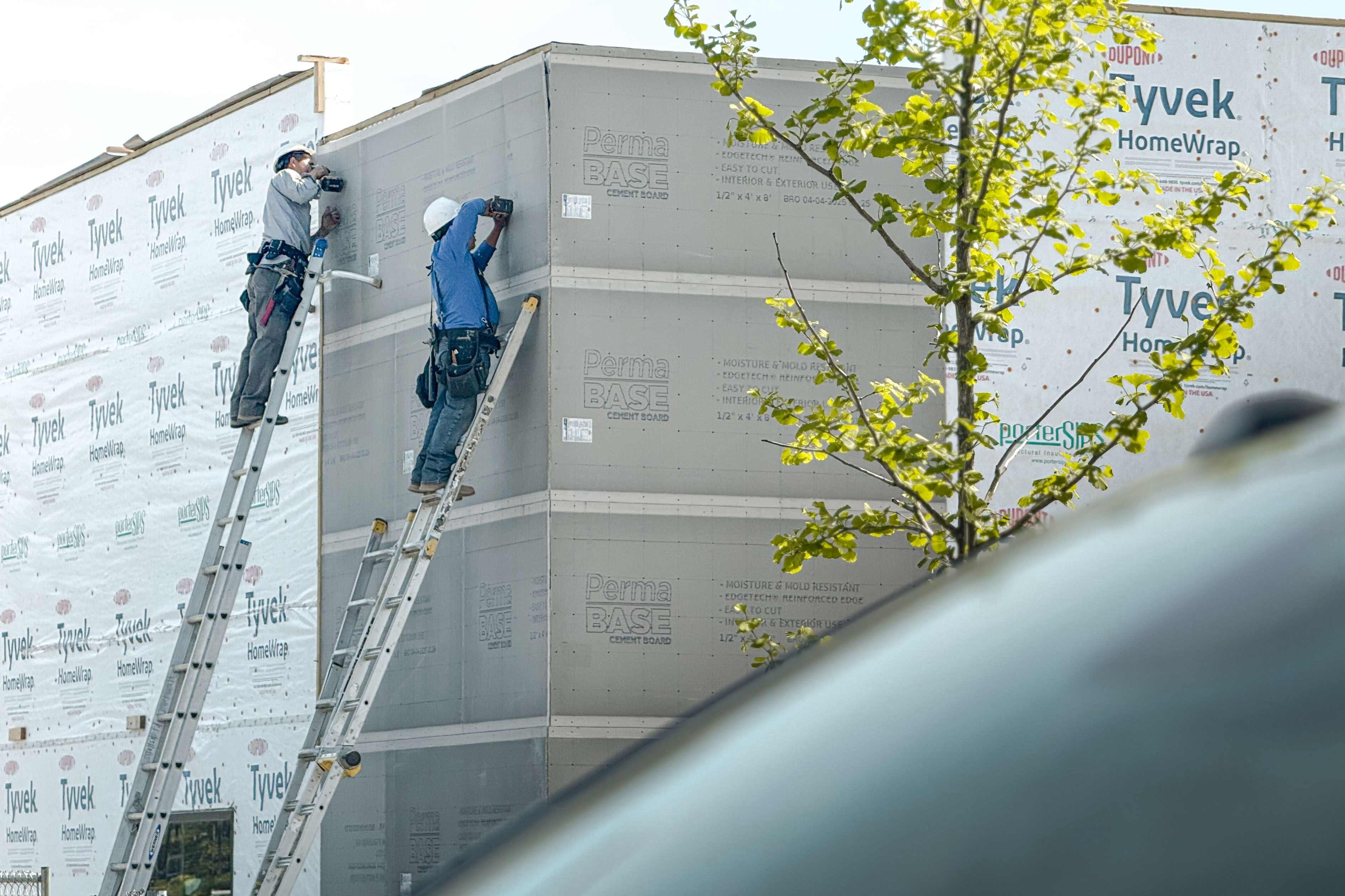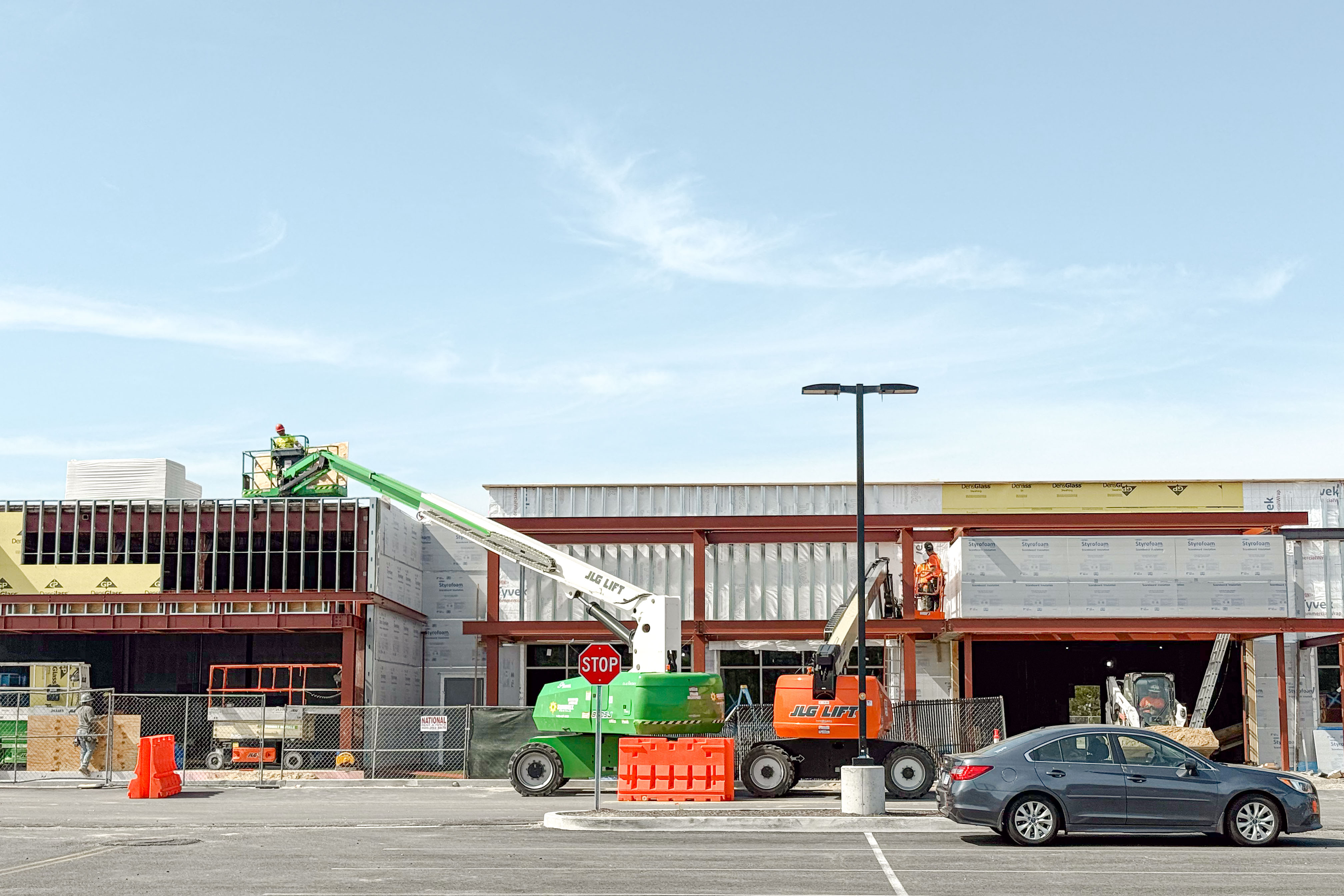 A new look for the Shops at SunVet required strategic demolition of parts of the original building . SBLM's next challenge became turning all of the rubble into valuable materials for construction; reuse became the focus. More than 75% of the existing construction was able to be reused. This success spared the developers the energy and cost of harvesting, producing, shipping, and installing outside materials. This not only benefitted the local and statewide environment, but also saved the developers money. With SBLM's commitment to this goal, dozens of forest acres, 30 metric tons of CO2, and more 4.3 million lbs of materials were preserved. A huge success for both the developer and contractor.